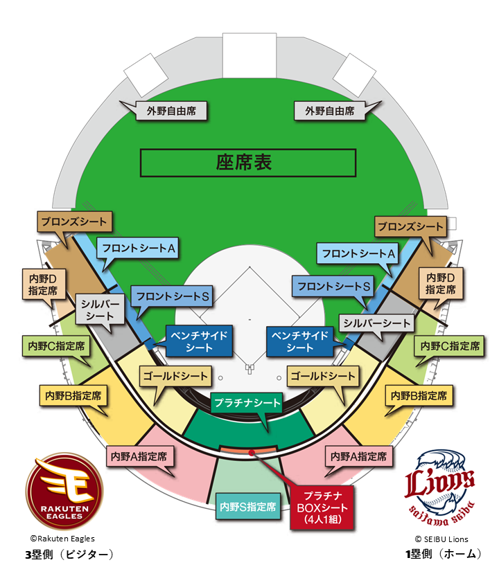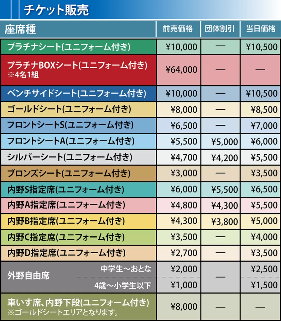 対象座席種:フロントシート A、シルバーシート、内野 S 指定席、内野 A 指定席、内野 B 指定席