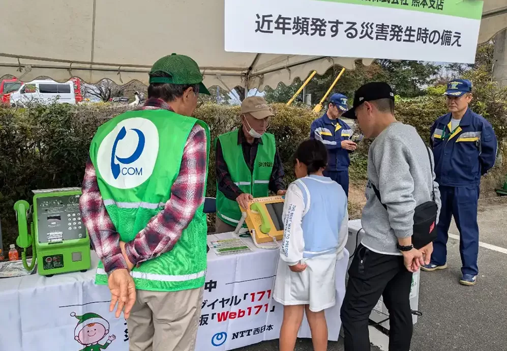 日本公衆電話会は、頻発する自然災害に対して、公衆電話の災害時優先電話としての利便性を広くPRし、その利用方法を普及させる活動をしています。また、各地の公共施設等に設置されている災害時用公衆電話の点検サポートや、災害時の安否確認サービスの認知活動を強化し、地域の安全と安心に貢献し続けることを目指しています。