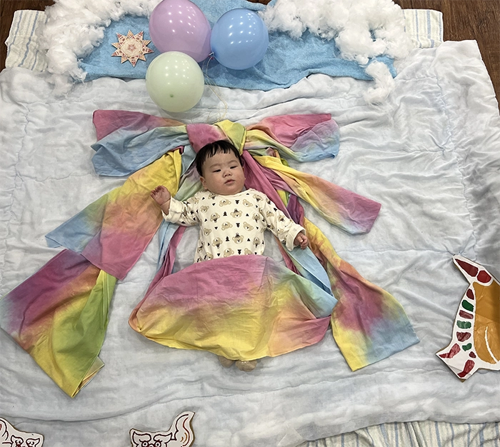 寝相&お座りアートで記念撮影!
