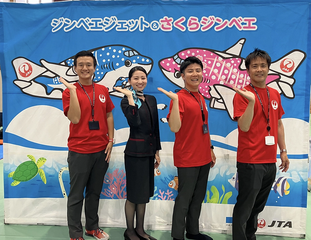 会場にやって来る現役CA、ジンベエジェット、さくらジンベエジェットとともに、飛行機とのはじめての記念撮影をお楽しみいただけます。また、当日はJTA社員がJALマイレージバンクの新規入会受付もお手伝いいたします。ぜひお立ち寄りください。