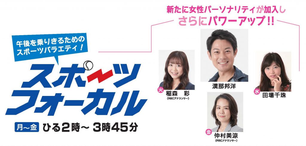 スポーツフォーカルは、新たに火曜日に稲森彩アナウンサー、水曜日に