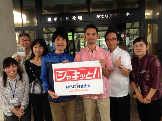 今朝の知念だラジオカーは嘉手納町へ行ってきました! かでな文化センターがリニューアルしたのを記念して映画上映とイベントが行われるということで 當山宏嘉手納町長、俳優の沖渡崇史さん、上映実行委員の喜本さんにお話を伺いました。 かでな文化センターは音響・照明を最新の設備にし客席はバリアフリーとなりました。 そんな新しいホールで嘉手納町出身の沖渡さんの主演する映画『愛の小さな世界』が上映されます 沖渡さんは高校生の頃にかでな文化センターの舞台に立った事が俳優を志すきっかけとなったそうです。 同時開催のカラーズグルメフェスタでは ボールドーナツ・マフィン・自家焙煎コーヒー・イタリアン惣菜や マーミヤかまぼこがこのイベントのために作るオリジナル限定メニューもあります。 今度の日曜日、5月22日はかでな文化センターへお越しください!