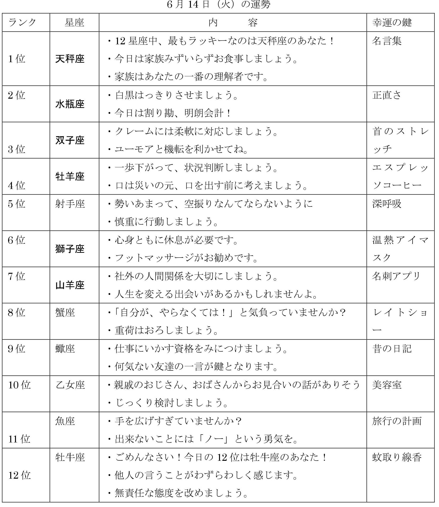 その日で一番運のいい方は、あなたかも!?
