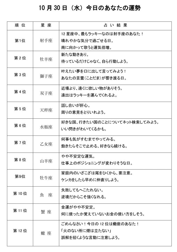 きょうのあなたの運勢は・・・?