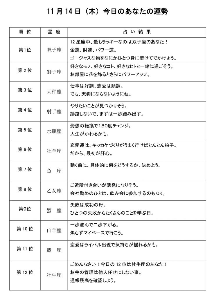 今日のあなたの運勢は・・・?