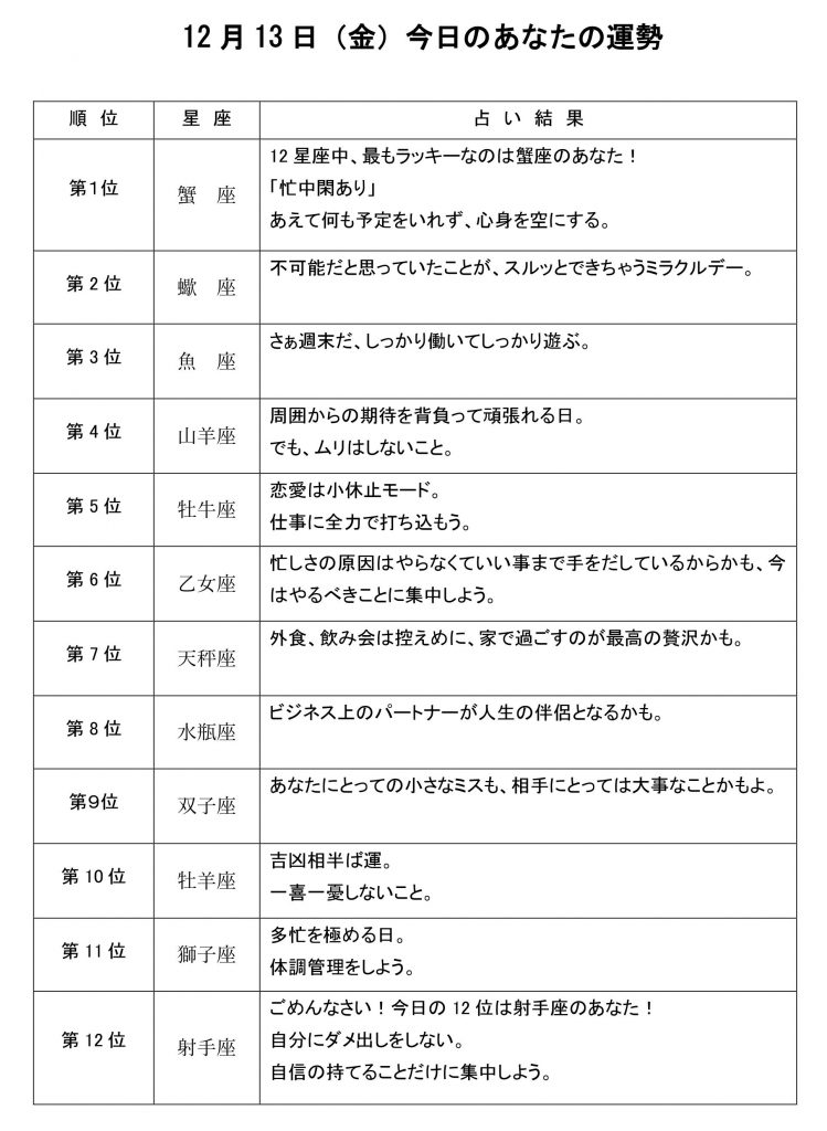 今日のあなたの運勢は・・・?