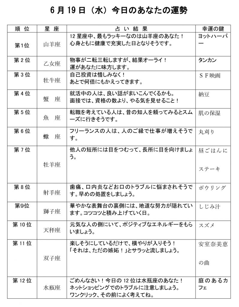 きょうのあなたの運勢は・・・?