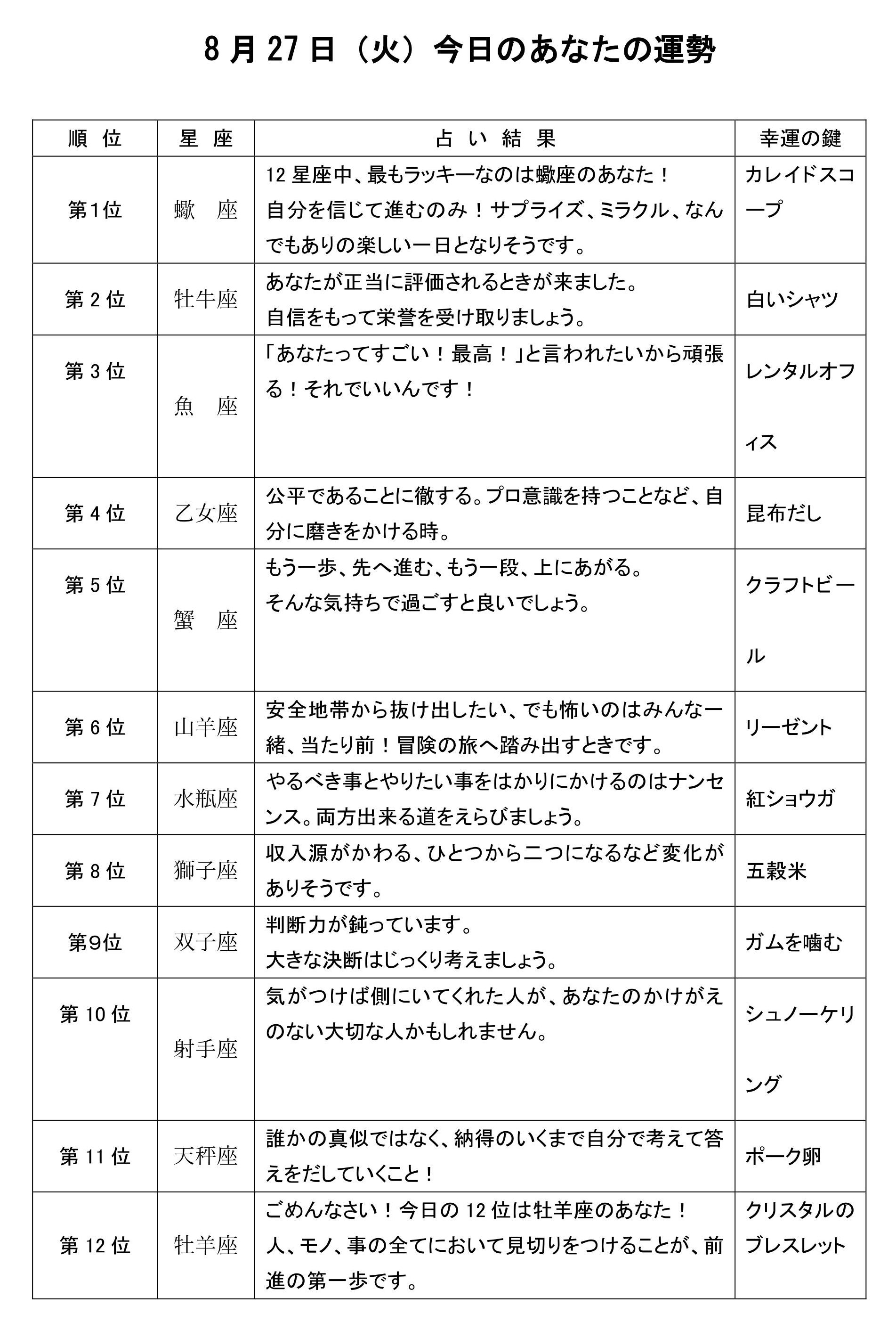 きょうのあなたの運勢は・・・?