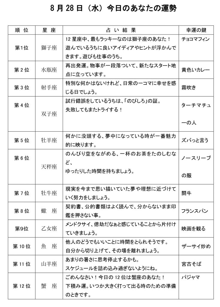 きょうのあなたの運勢は・・・?