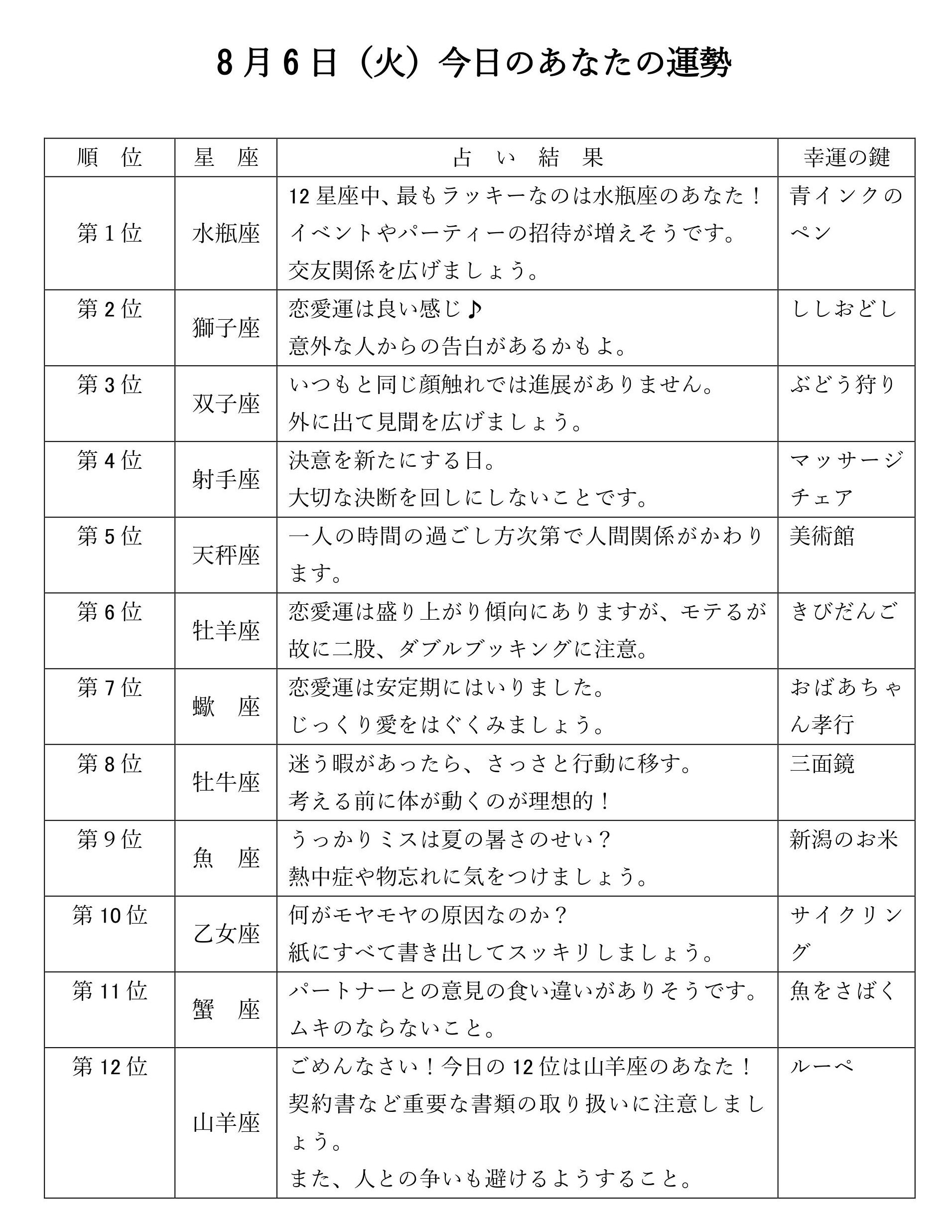 きょうのあなたの運勢は・・・?