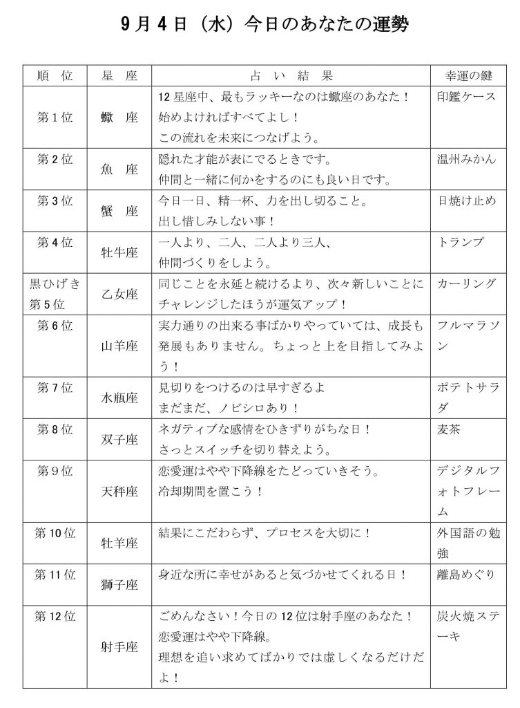 きょうのあなたの運勢は・・・?