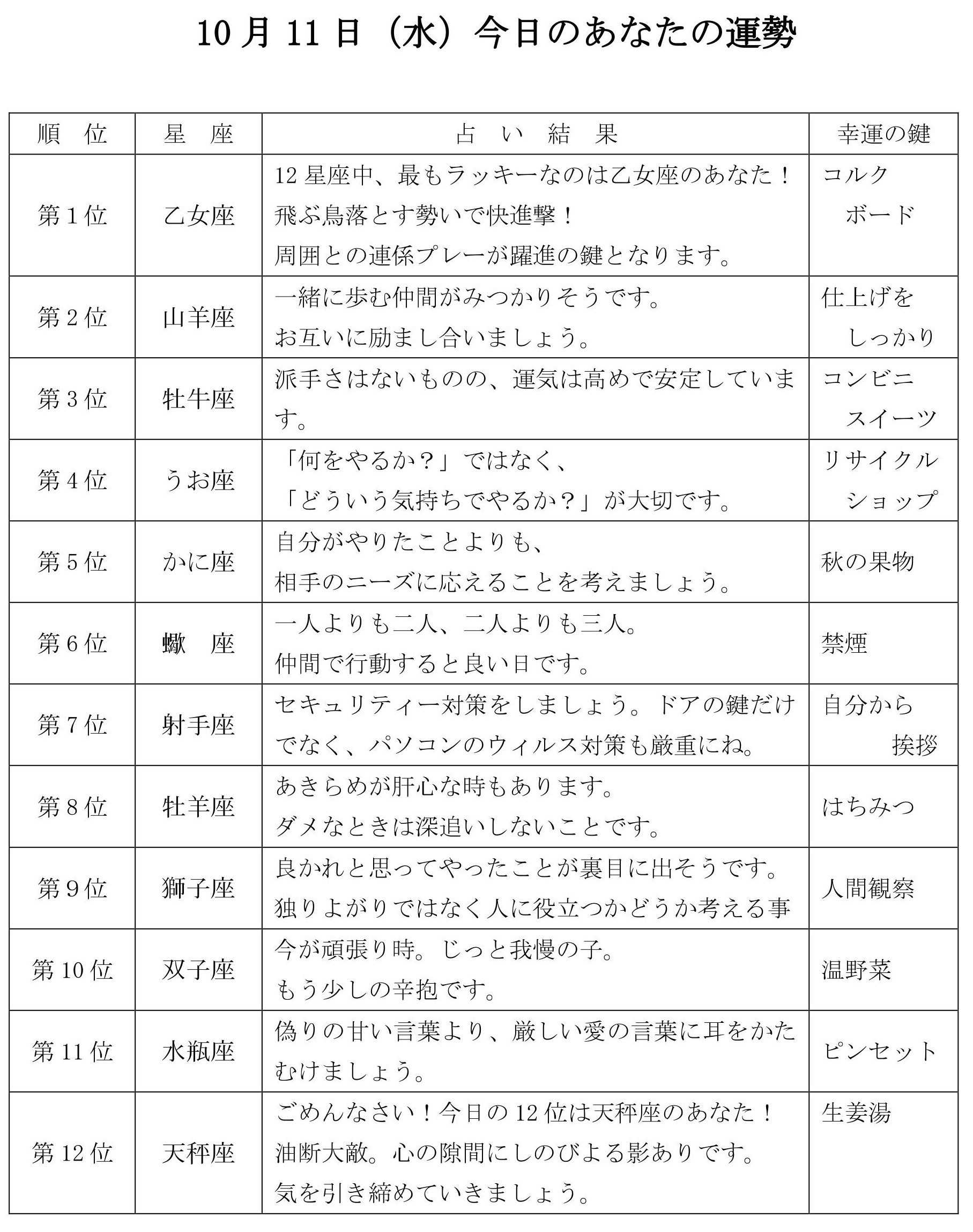 今日のあなたの運勢は・・・?