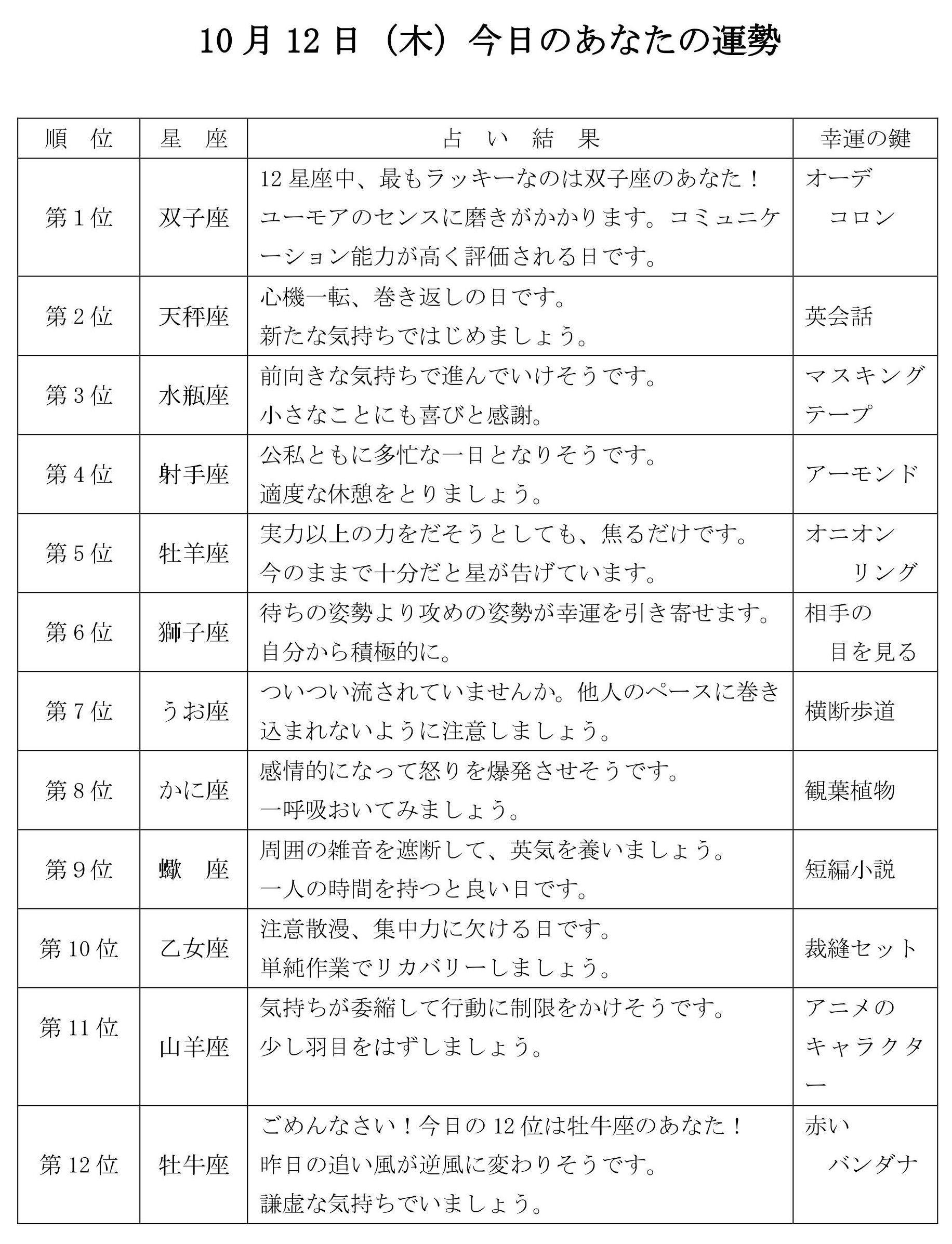 今日のあなたの運勢は・・・?