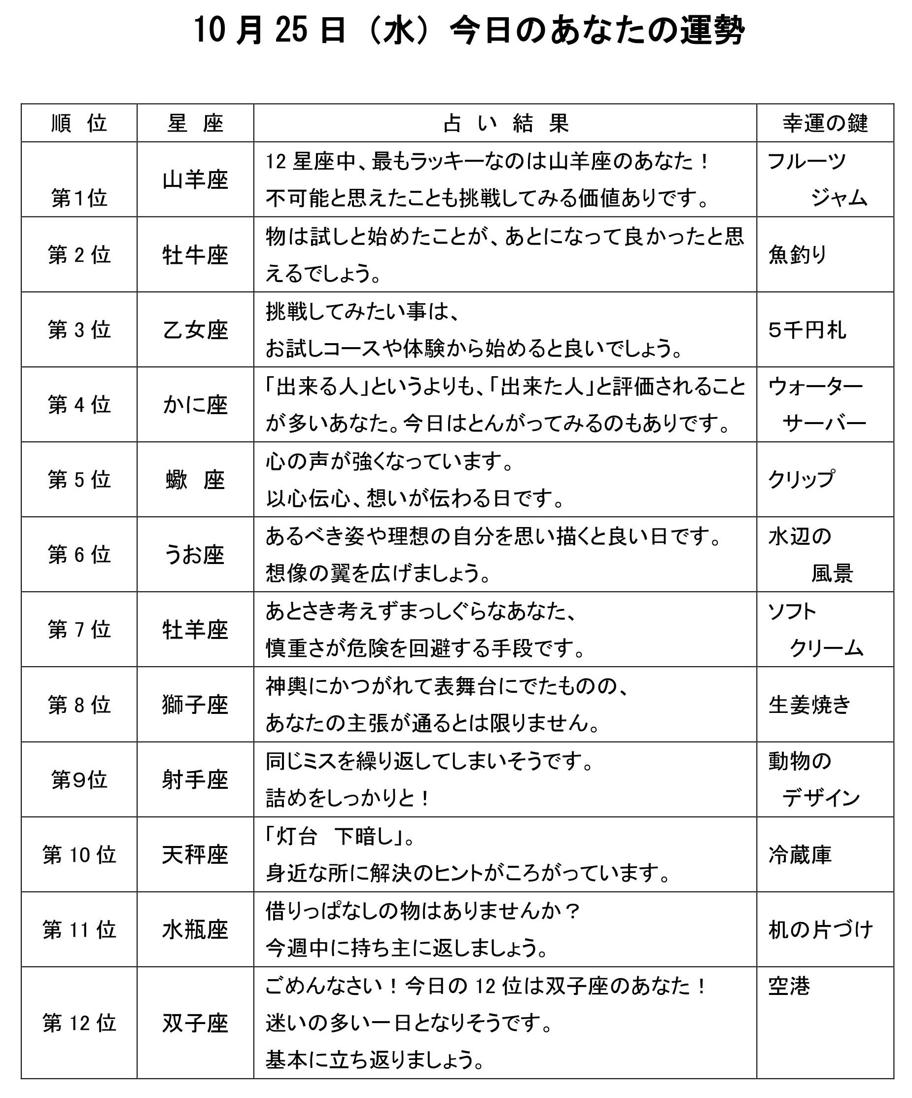 今日のあなたの運勢は・・・?