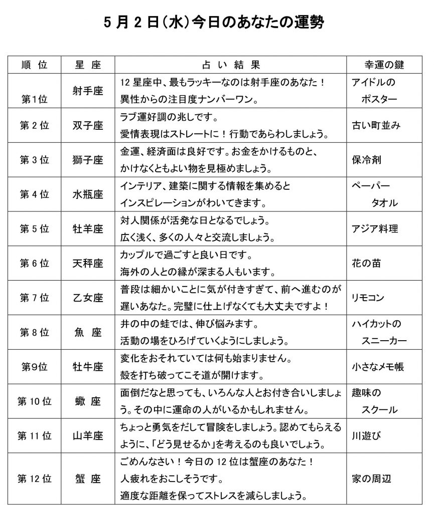 今日のあなたの運勢は・・・?