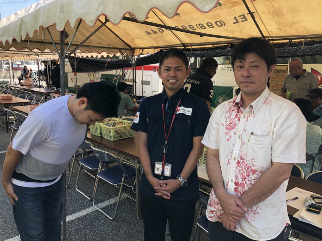 赤十字血液センターの野原さん、株式会社照屋土建の大城課長、