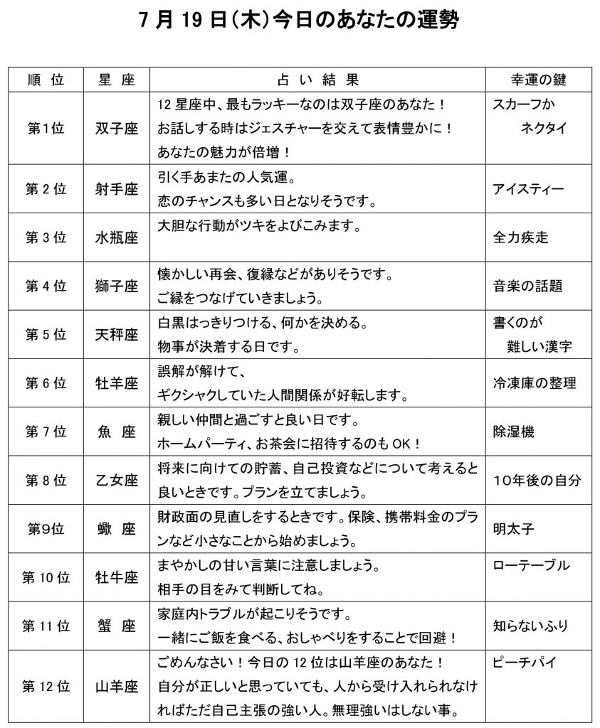 今日のあなたの運勢は・・・?
