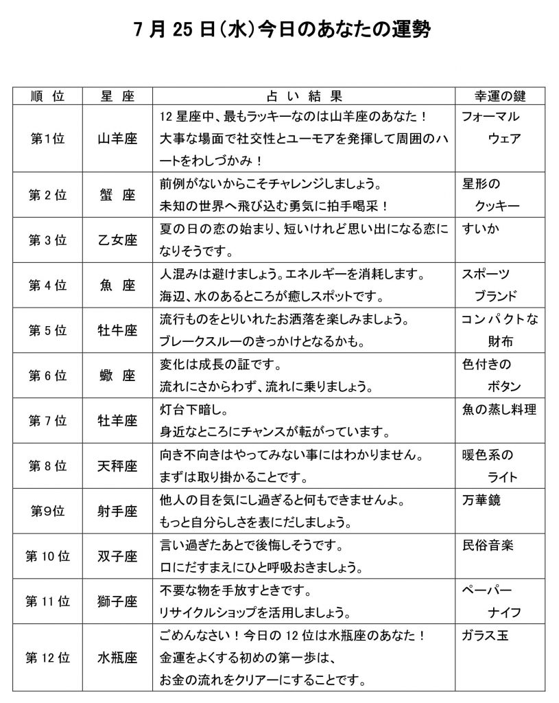 今日のあなたの運勢は・・・?