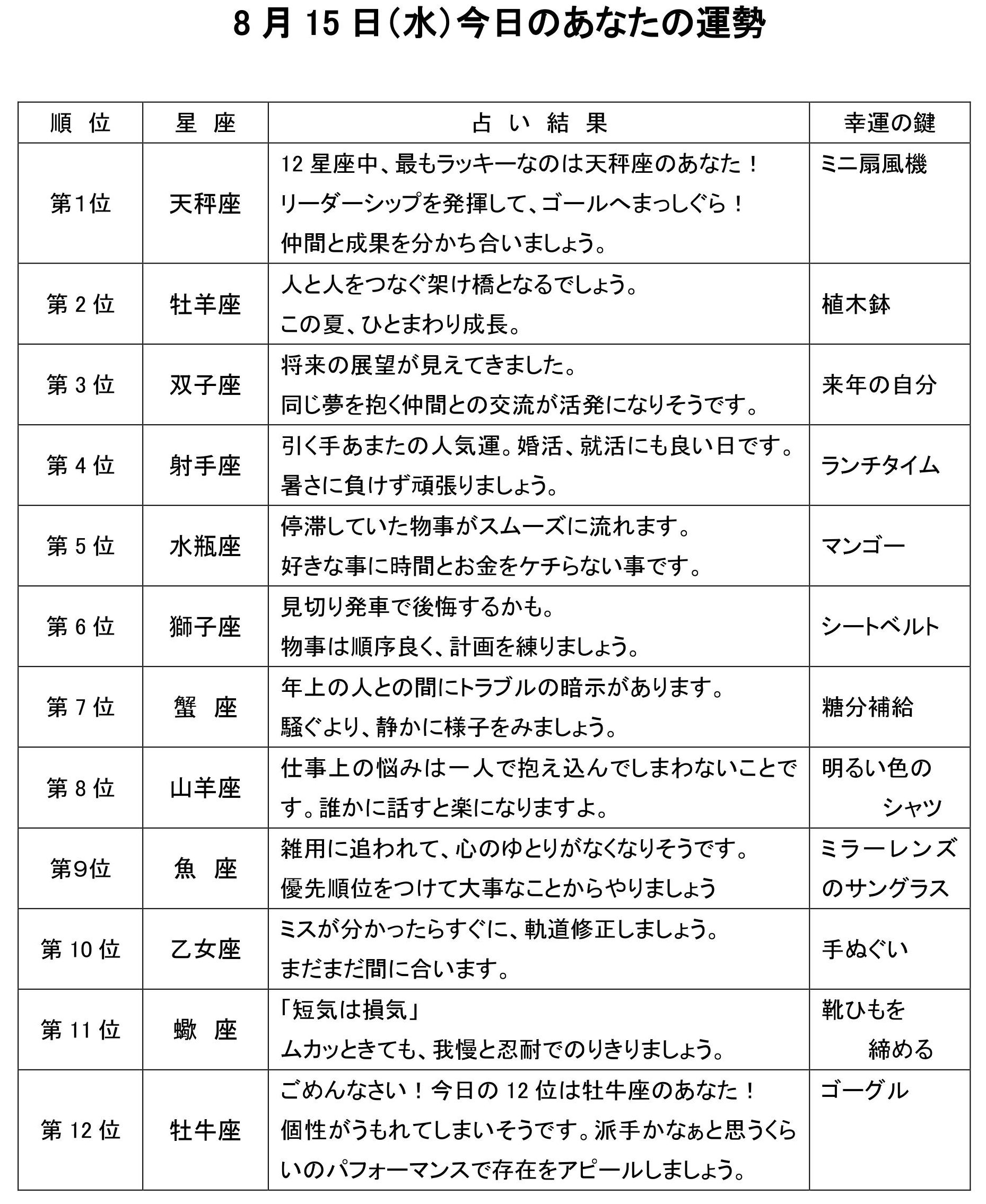 今日のあなたの運勢は・・・?