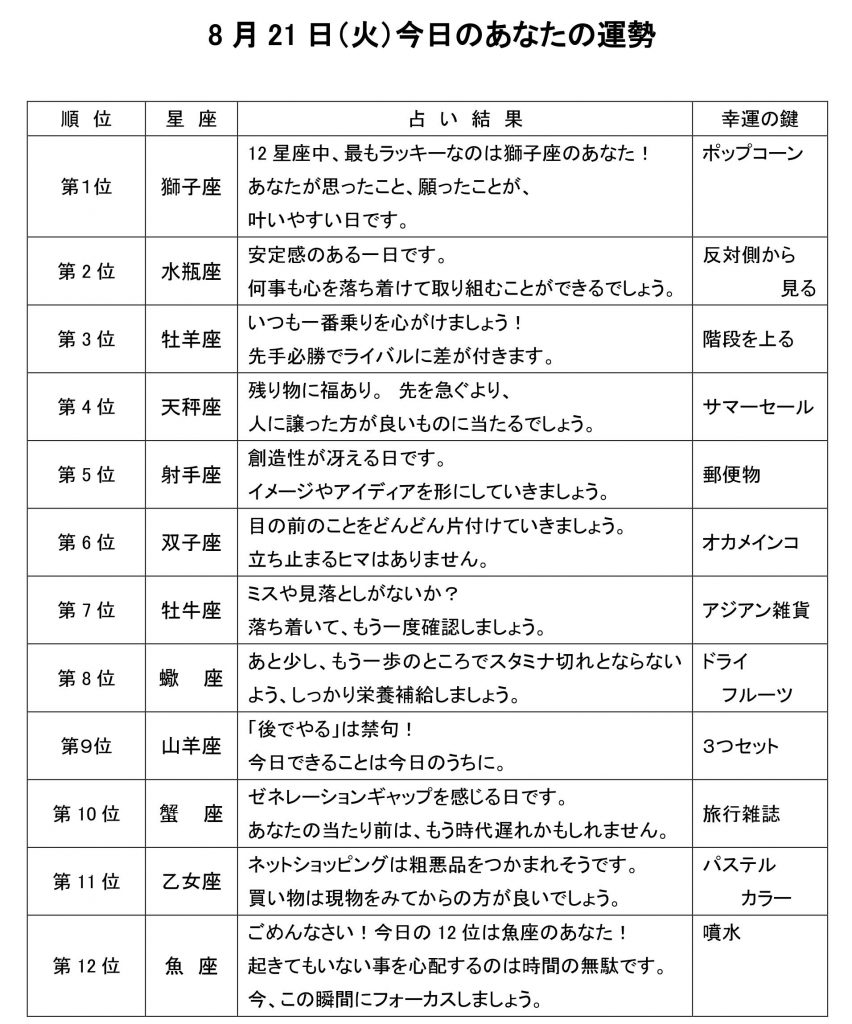 きょうのあなたの運勢は・・・?
