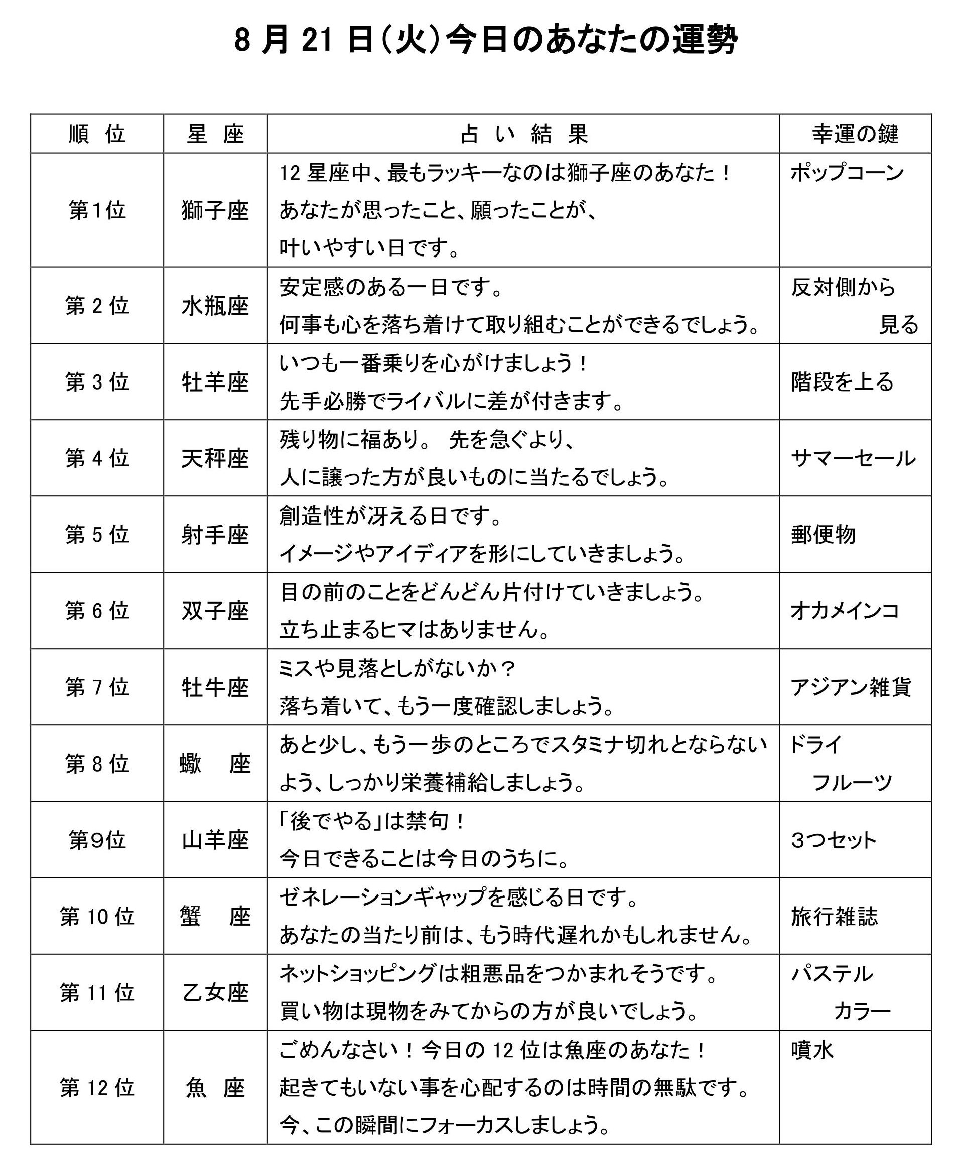 きょうのあなたの運勢は・・・?