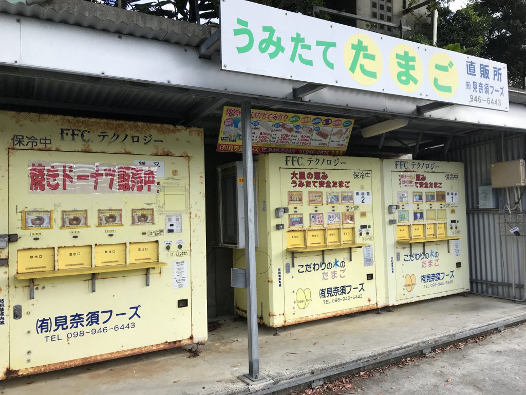 シャキッとiをお聴きの皆様、こんにちわ! 木曜リポーターの儀保盛充です。 今日は南城市大里字平良にある(有)見奈須フーズ養鶏所前の たまごの自販機で販売されている"焼きドーナツ"をリポート! その日、産みたてのたまごが買える自販機の隣に焼きドーナツの自販機が。 プレーンやチョコ・抹茶・黒糖・紅芋の5つのフレーバーがあります。 お金を入れるとアナウンスが流れしばらくすると商品が出てきます。 新鮮な卵を使った焼きドーナツは一個150円。 厚みのある円形のドーナツでモチモチもっちりの食感に優しい甘さが美味しい。 自販機以外にも与那原町東浜にある「らんらん家」でも購入できるそうです。 焼きドーナツの自販機の場所↓ 南城市大里字平良2388番地 (大里から佐敷にぬける道にあります)