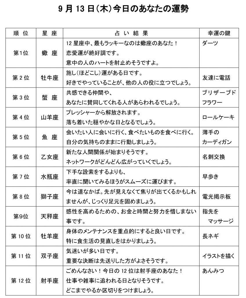 今日のあなたの運勢は・・・?