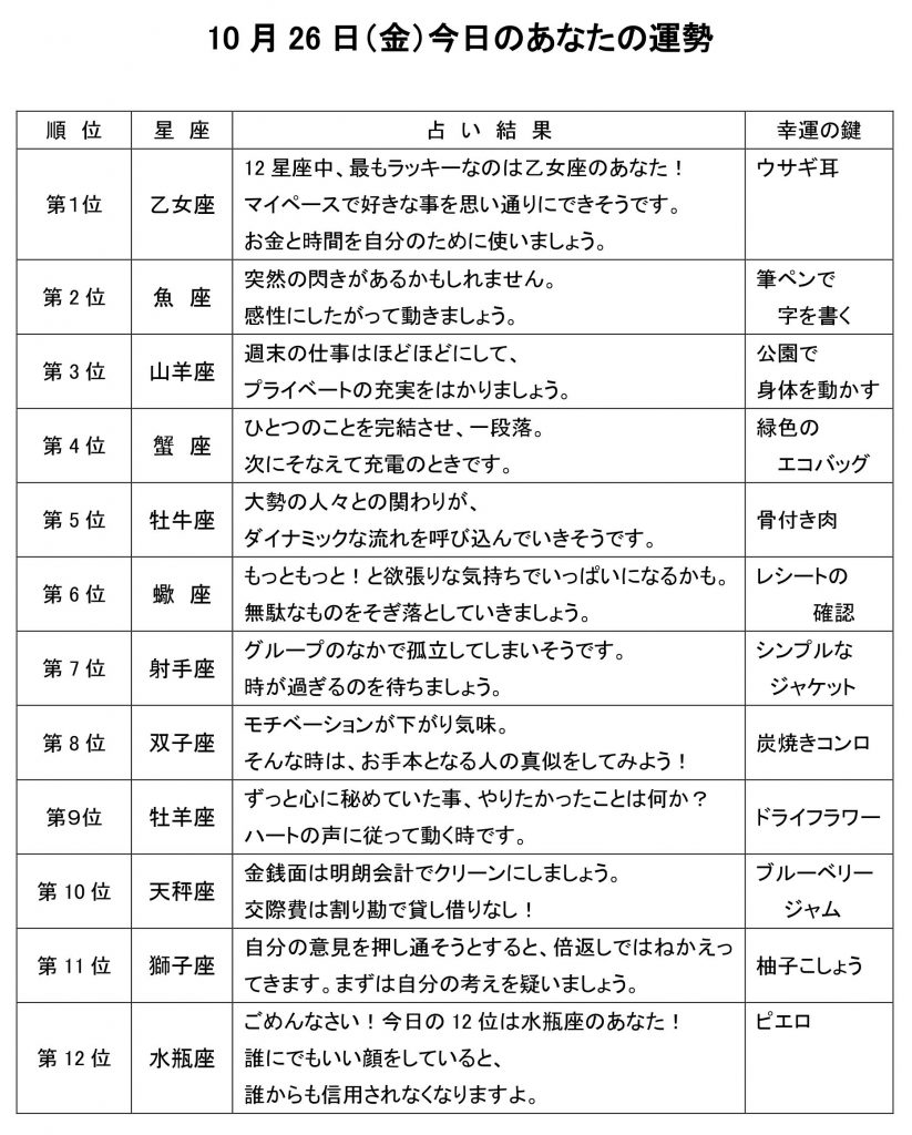 今日のあなたの運勢は・・・?