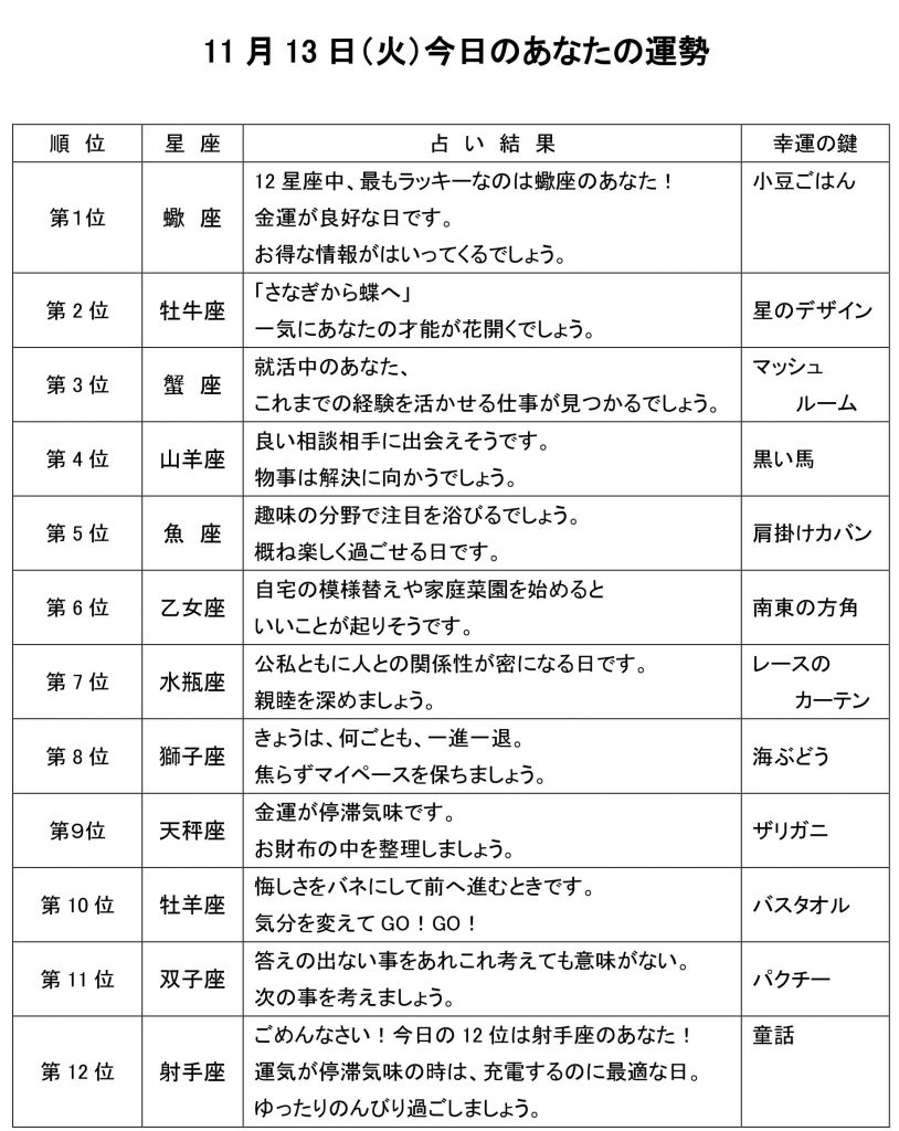 きょうのあなたの運勢は・・・?