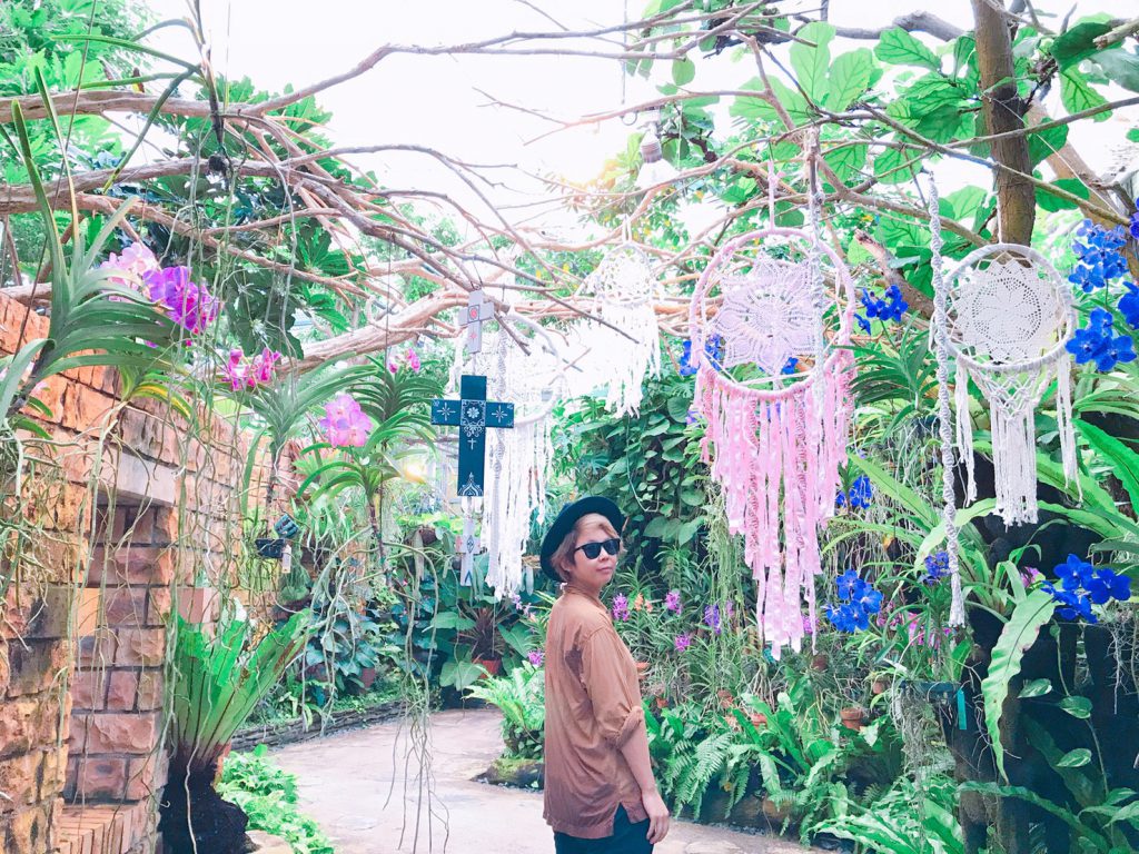ピンク色と白色のドリームキャッチャーは、バンダ温室という所で見られます。
