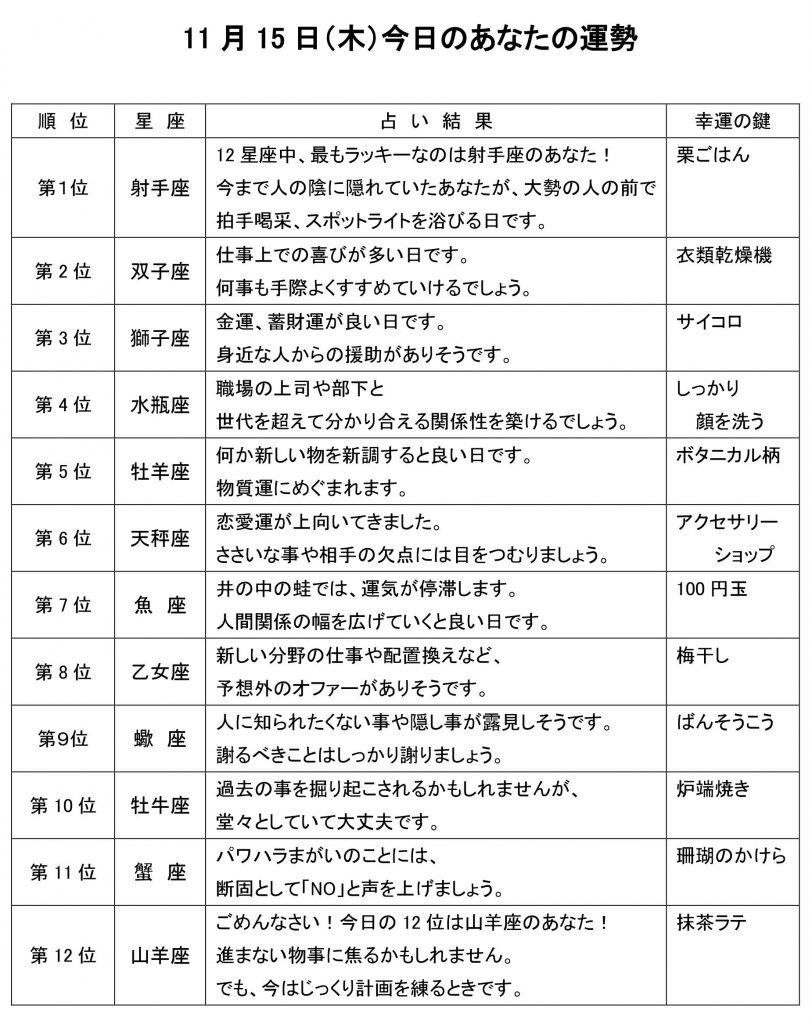 今日のあなたの運勢は・・・?