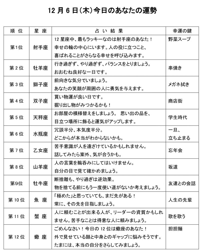 今日のあなたの運勢は・・・?