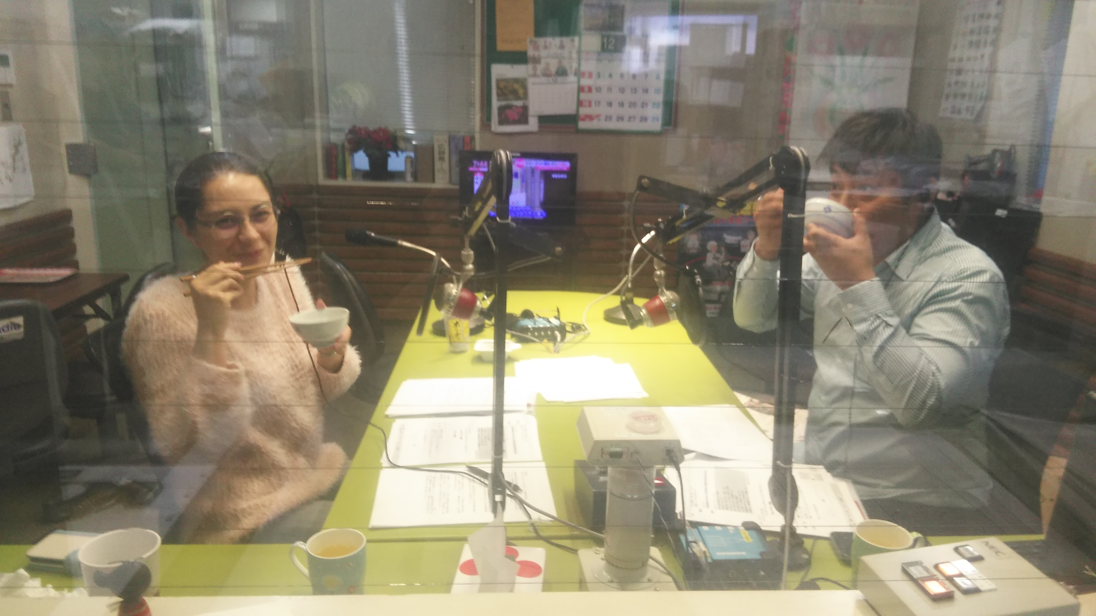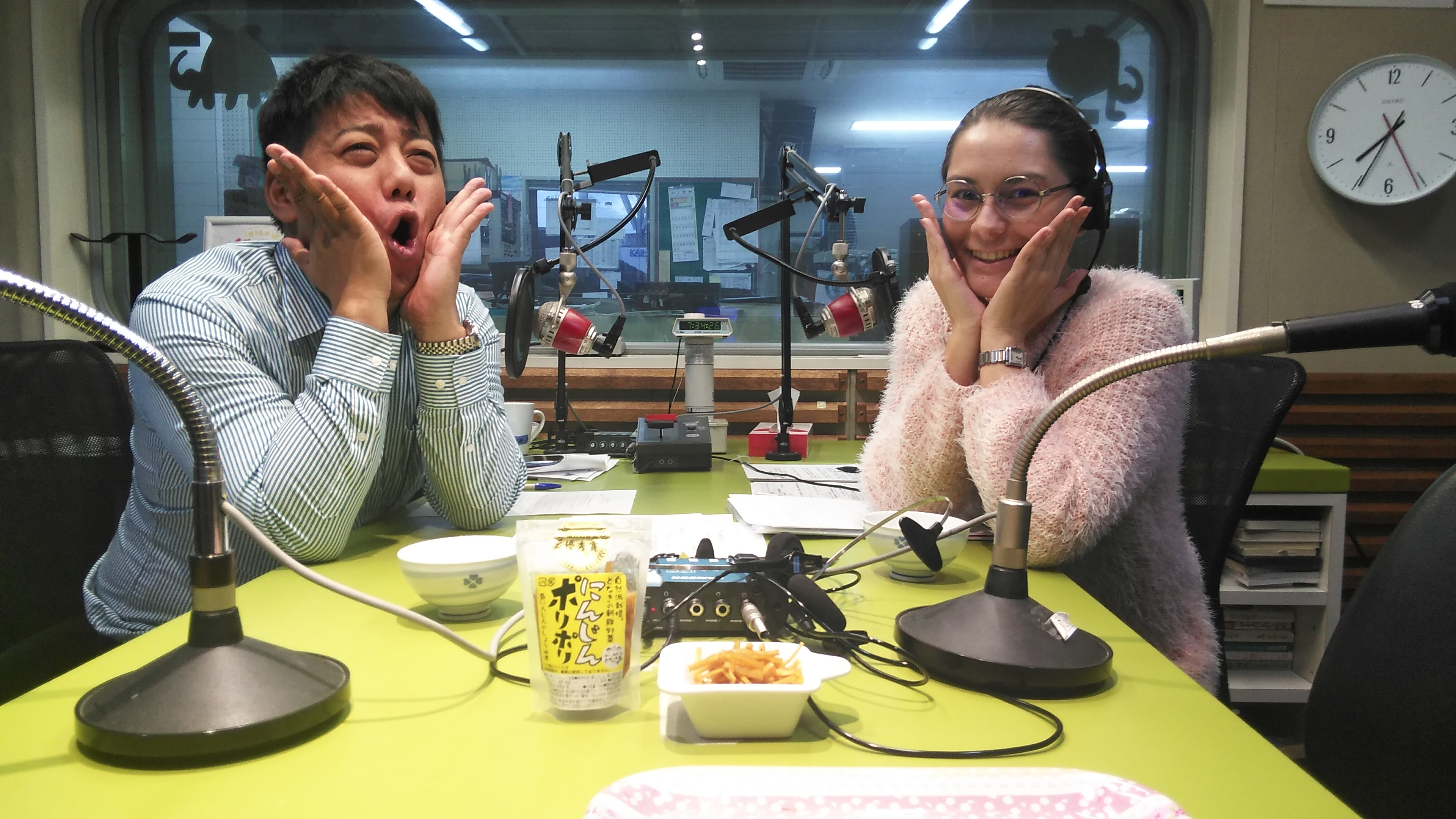 「くわっちータイム」が終わっても、おかわりして食べ続ける2人をスタジオのガラス越しに激写!