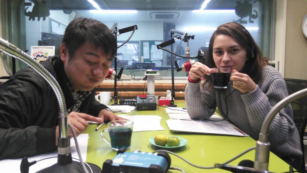 ここでは沖縄音楽を体験して思い出を音として作れる新たな観光土産なんですが、まずは三線を体験して歌って、レコーディングします。