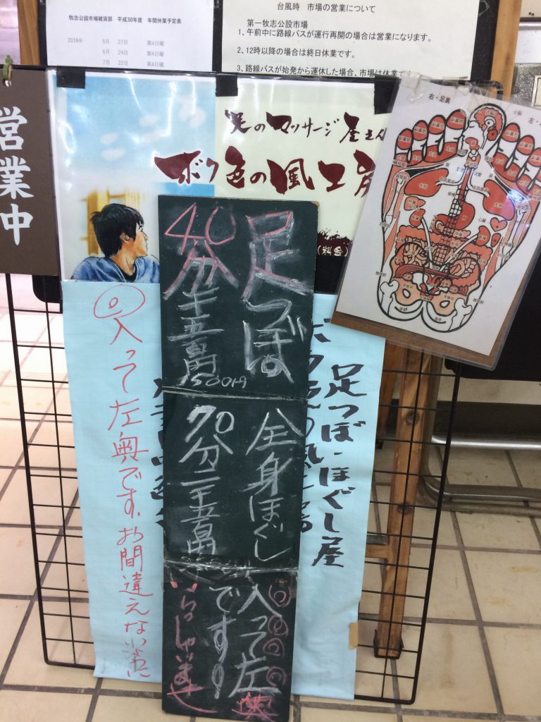 今朝は、那覇市第一牧志公設市場の雑貨部、ちょうど花笠食堂斜め向かいにある化粧品屋さんやブティックが入っている雑貨部内にある足裏マッサージ店「僕色の風工房」に行きました。
