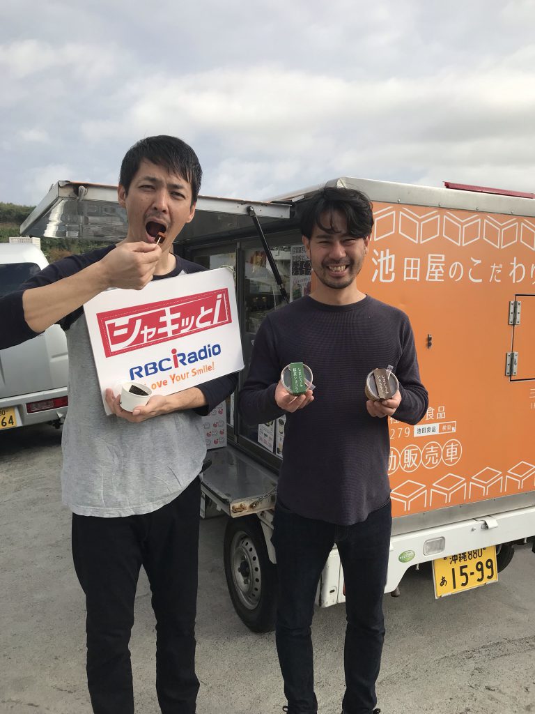 おはようございます。 木曜リポーター豆腐も好き儀保盛充です。 シャキッとiリポート、今朝は西原町池田にある 三代目池田屋(とうふの池田屋)に行ってきました。 来週、2/14(木)はバレンタインデー。 バレンタインデーを前におススメの"ショコラ"をご紹介。 移動販売車で県内各地を回り、アチコーコーのゆし豆腐や島豆腐等を販売している池田屋さん。 スイーツも販売しているんです。その名も「罪悪感なしスイーツ とうふショコラ」。 60%が島豆腐という触れ込み・・実際食べてみると、、生チョコ。 しばらく食べても生チョコ。食べ終わる頃にほんのり、うん? コレ豆腐?という不思議な味わい。 そして、旨い!チョコの方は、 柔らかさといい風味と良い豆腐だと気付かずに食べてしまいそう。 抹茶味の方が豆腐の風味と味わいがしっかり出ている感じ。 (1個 350円 50g) 最初はゆし豆腐で試したそうですが、水分の抜けに苦労し、 島豆腐に切り替えて「コレだ!」とヒットの確信があったそうです。 大豆の良さ・美味しさを熟知している豆腐屋さんがつくるスイーツ! ぜひお召し上がり下さい。 移動販売は、南は糸満から北はうるま市石川辺りまで回っているそうなので、 あなたの町で見かけたらぜひ!