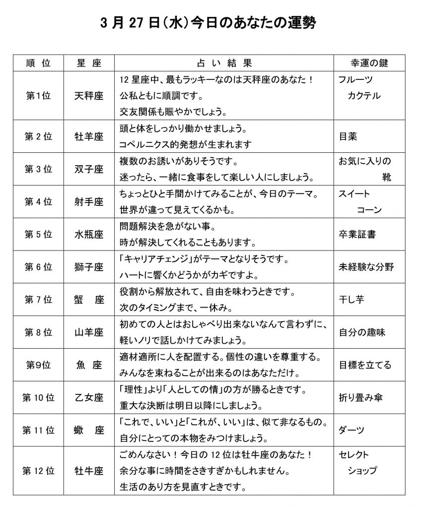 今日のあなたの運勢は・・・?