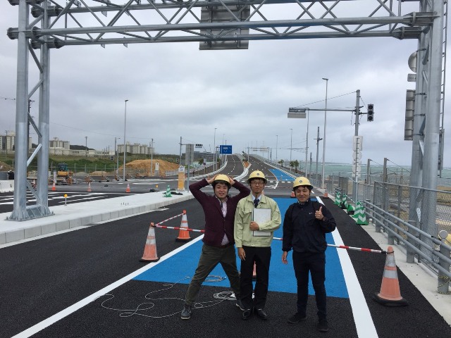 今朝は開通前の浦添西海岸関連道路に特別に入れてもらいました。