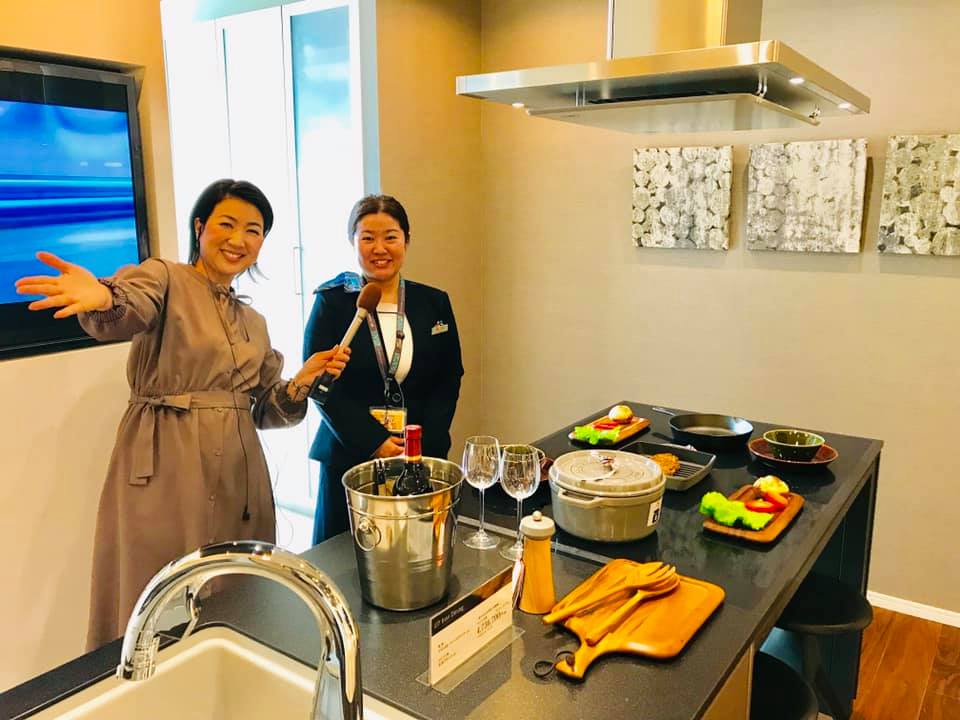 (右)パナソニックリビングショウルーム沖縄 アドバイザー 新垣恵さん (左)MC 島袋千恵美 素敵なキッチンを紹介してもらいました!