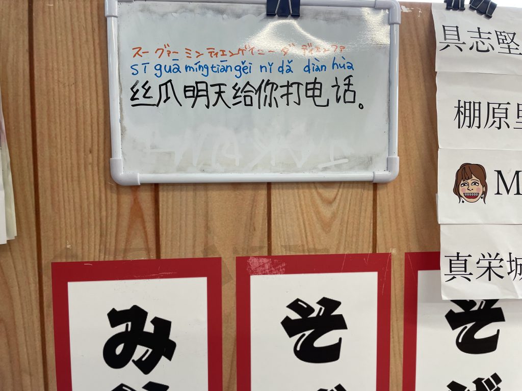 答え: 「 中国語講座のホワイトボードが貼られていた 」