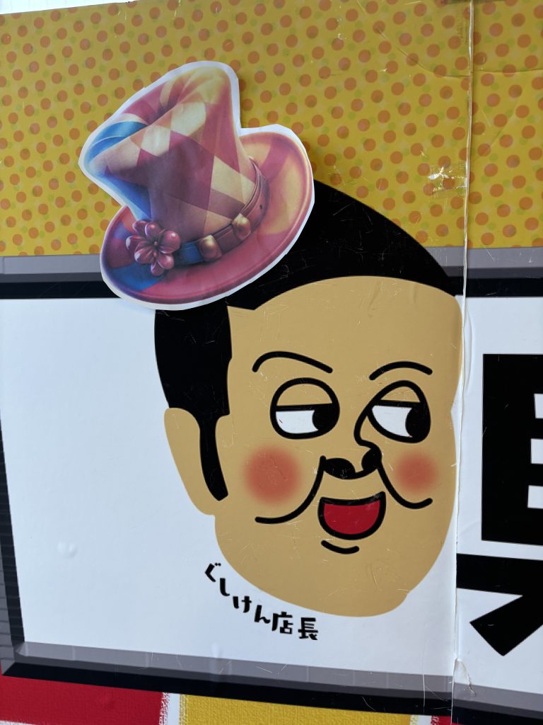 答え: 「看板の店長がシルクハットをかぶっている 」