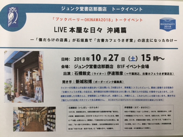 お話:ジュンク堂書店那覇店店長:森本浩平店長と 市場の古本屋ウララ店主:宇田智子さん