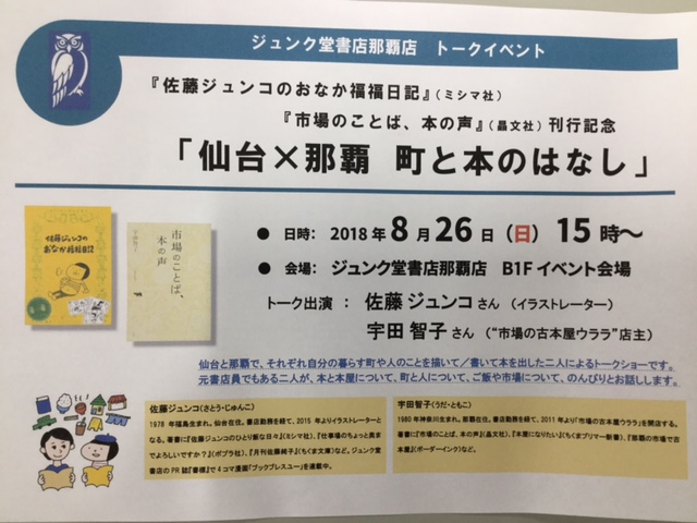 お話:ジュンク堂書店那覇店店長:森本浩平店長と市場の古本屋『ウララ』店主の宇田智子さん