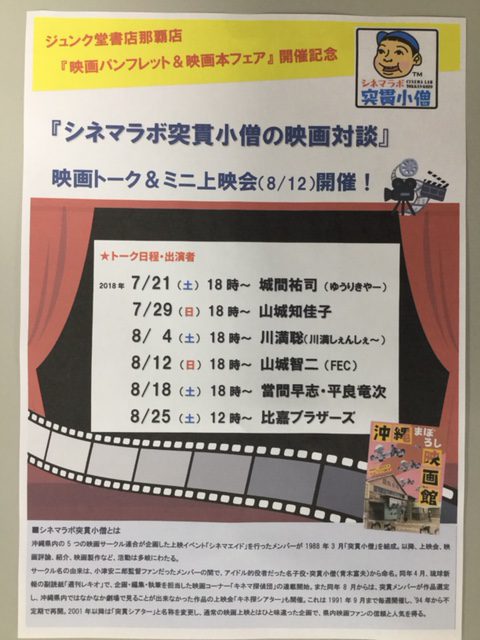 お話:ジュンク堂書店那覇店店長:森本浩平店長と「NPO法人シネマラボ突貫小僧」代表でライター、カメラマンの平良竜次さん