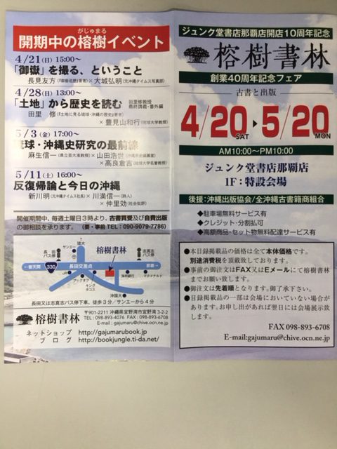 お話:ジュンク堂書店那覇店店長:森本浩平店長と沖縄大学名誉教授の田里修先生