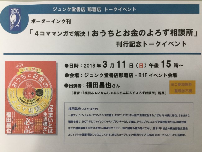 お話:ジュンク堂書店那覇店店長:森本浩平店長(右)とファイナンシャルプランナーの福田昌也さん(左)