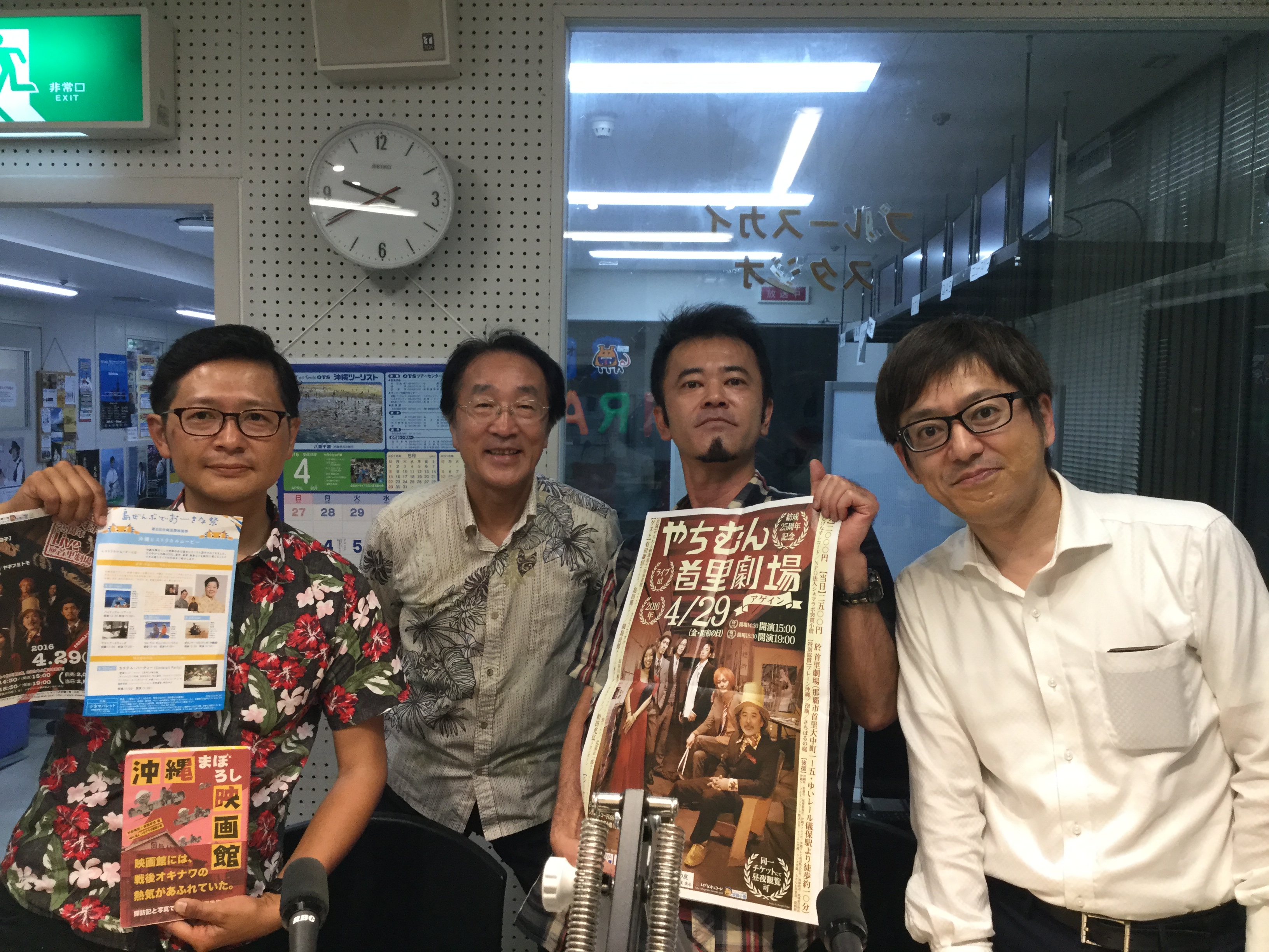 当間早志さん(中央右)と平良竜次さん(左)