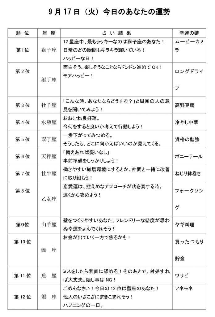きょうのあなたの運勢は・・・?