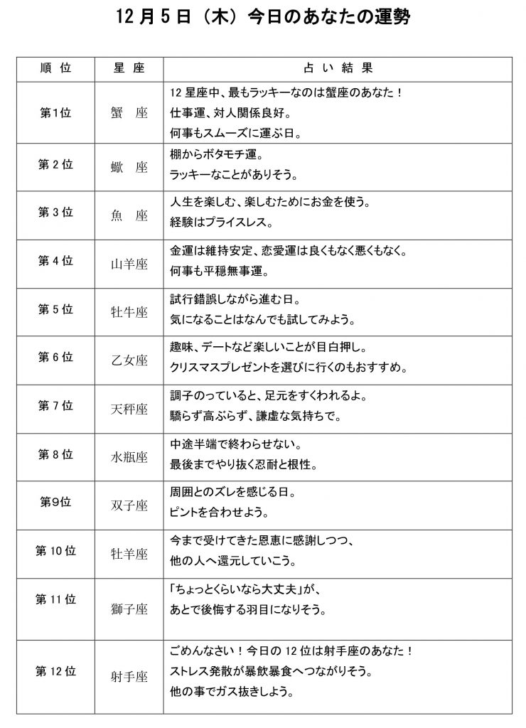 今日のあなたの運勢は・・・?