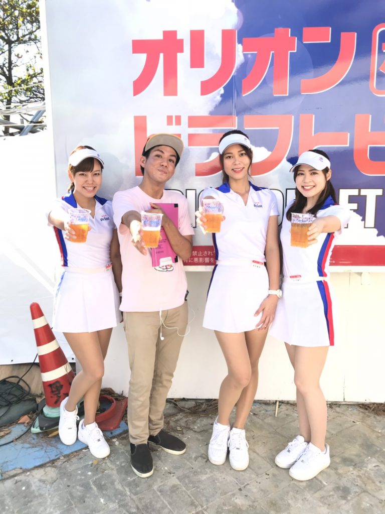 皆さんと沖縄の太陽のもとでのオリオンビール。